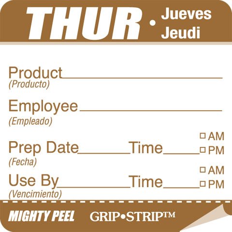 2"X2" Label TRILINGUAL EMP/PREP DATE MIGHTY PEEL with GRIP STRIP