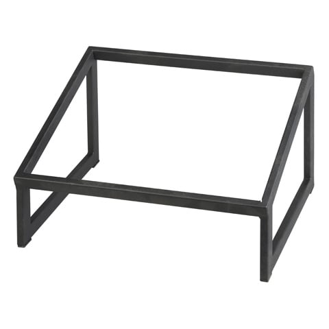 The Tiger Hotel T-Collection Steel Riser (Inclined) is constructed from powder coated steel pipes for a modern, sleek look. It is compatibly sized to fit the Grey Ash Wooden Tray and Ice White Lucite Tray (19117-750, 19119-000). Use it to raise platters, desserts, or hors d'oeuvres to ideal viewing and serving height at your buffet or banquet. The open frame design provides elegance while still allowing guests to see the items on display. Pair it with the higher risers (19940-003, 19940-004) for a customizable and eye-catching presentation.