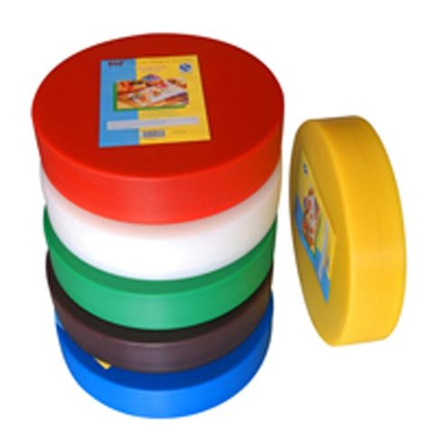 The Plastic Round Chopping BoardØ Ø16"xH4" is a durable and versatile kitchen essential, ideal for slicing, dicing, and chopping a variety of ingredients. Its round design offers ample surface area for efficient food preparation, while the sturdy 4-inch height provides stability during use. Crafted from high-quality, food-safe plastic, it resists stains and odors, ensuring long-lasting performance and easy maintenance. The non-porous surface makes it hygienic and simple to clean, either by hand or in the dishwasher. Lightweight and practical, this chopping board is a perfect addition to any home or professional kitchen. To maintain hygiene and prevent cross-contamination, different colors of chopping boards are often used for specific food groups: red for raw meat, blue for raw fish and seafood, yellow for raw poultry, green for fruits and vegetables, brown for cooked or ready-to-eat foods, and white for dairy products or bakery items. This color-coding system is particularly valuable in ensuring food safety in professional kitchens.